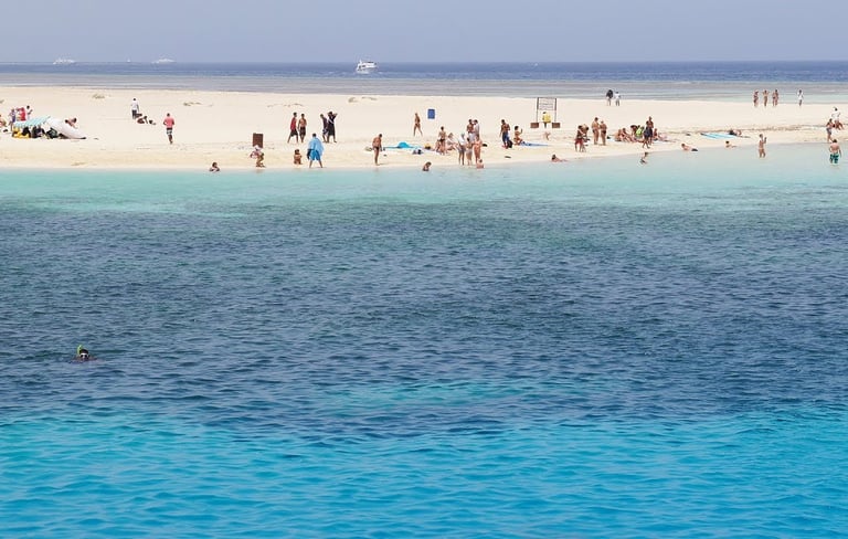 Our guide will give you a short introduction and tell you about the trip's program. We have selected the best snorkeling spots for you. You will do two snorkeling trips of 45 minutes each on different reefs. Admire the underwater world of the Red Sea. You will then have lunch on board. On Utopia Island, you have enough time to relax, sunbathe, swim, and snorkel here. Afterward, you drive with the Banana boat.